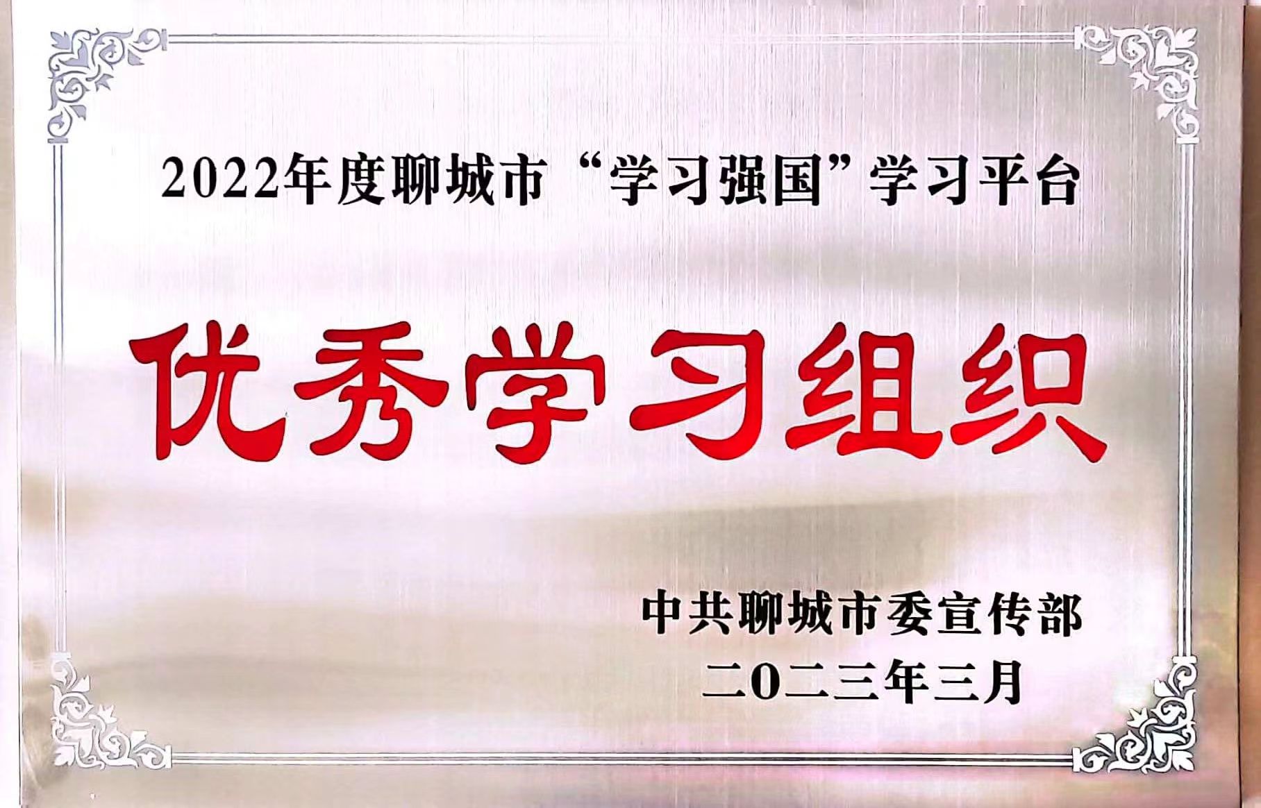 近日,中共聊城市委宣传部对2022年度聊城市“学习强国”工作先进集体、优秀组织和优秀个人进行了表彰,鑫亚公司学习组织荣获聊城市“优秀学习组织”称号。